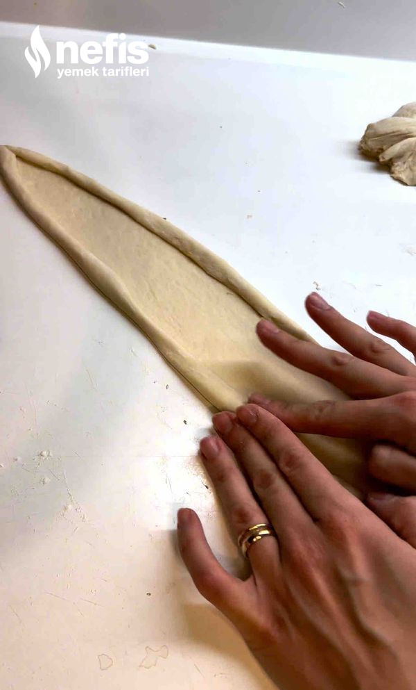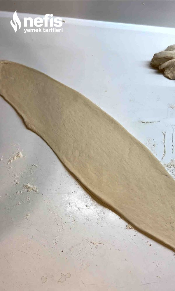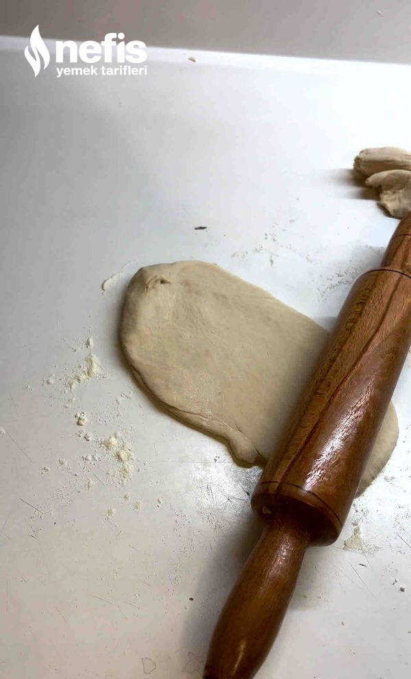 6. Kenarlarını katlayıp pide hali verelim. (ben bu tanımda peynirli kaşarlı bir harç kullanacağım için pide hamurunu önden pişirdim zira birebir anda fırına verirsek hamur pişene kadar kaşar çabucak eriyip yanacaktır)