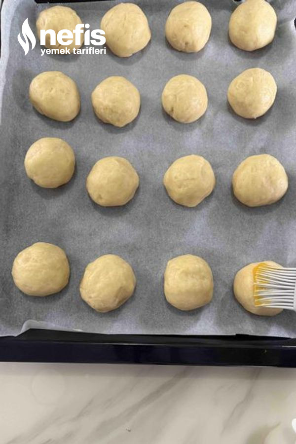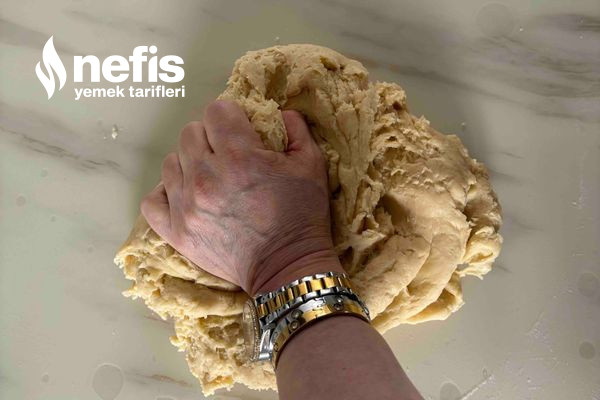 - Sonra tezgâhın üzerine alıp 5 dakika kadar pürüzsüz oluncaya kadar yoğurunuz tekrar yoğurma kabınızın içine koyup üzerini kapatınız 45 dakika kadar mayalanmaya bırakınız .