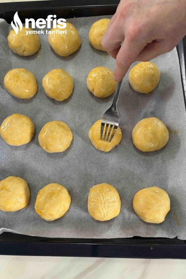 - Üzerlerine ayırmış olduğunuz yumurta sarısını sürünüz ,çatalla üzerlerine çarpı hal veriniz.