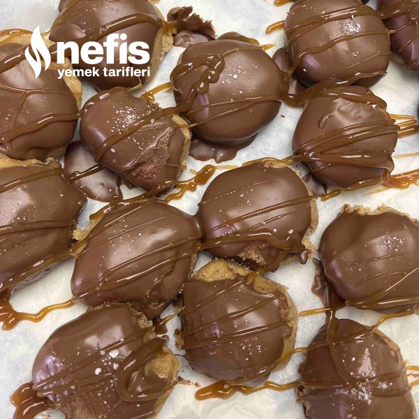 9. İsteğe bağlı: karamel sosunu ekledikten sonra 20 dakikalığına buzluğa atabilirsiniz. Bu biçimde batırdığınız sütlü çikolata sertleşir ve yenmesi daha zevkli bir tecrübe sunar. Afiyet olsun 🤎.