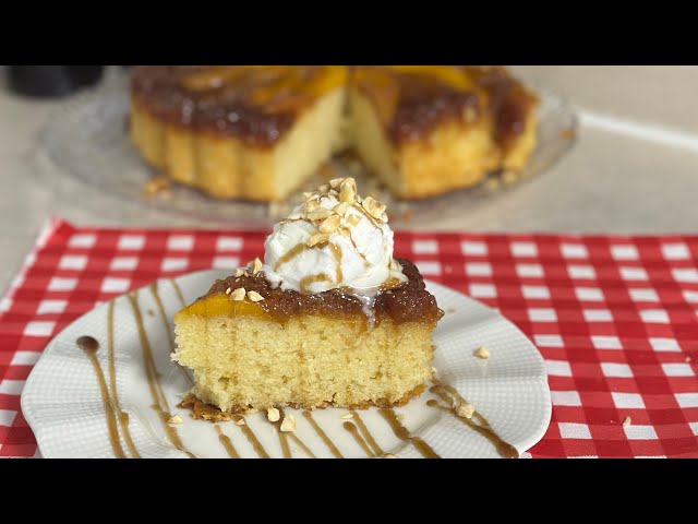 Karamelli Şeftalili Kek Tarifi (Videolu)
