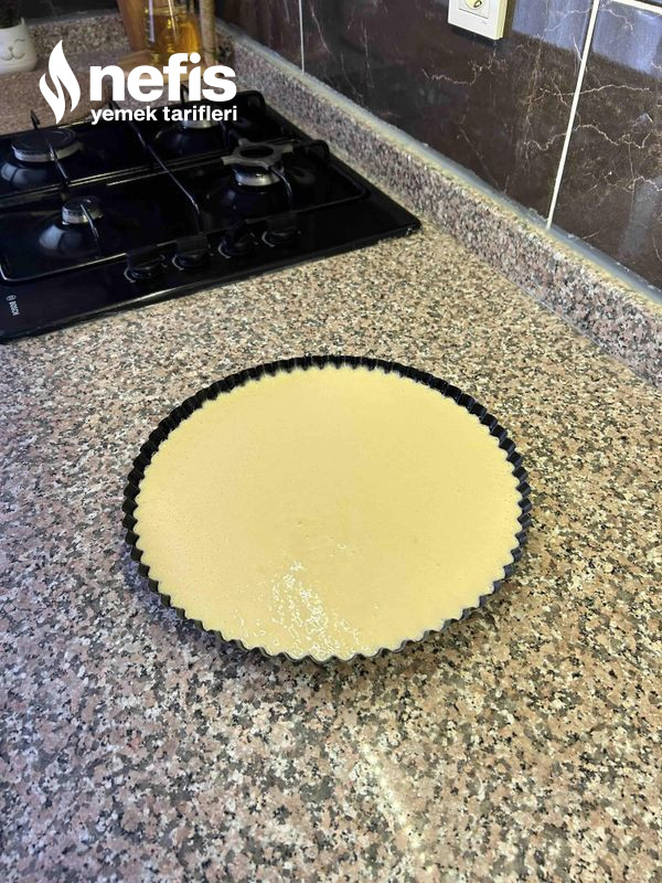 - Geri kalan tüm materyalleri ekleyip tart kalıbını yağlayarak içerisine ekliyoruz.