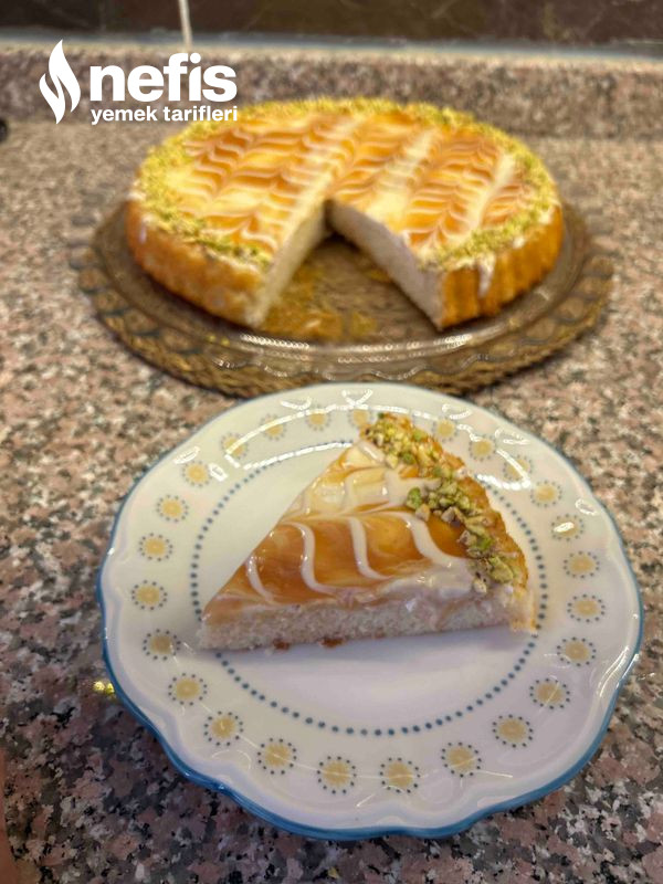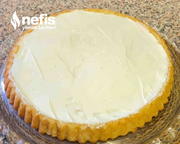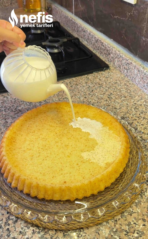 - Kekin ısısı azaldıktan sonra krema karışımını üzerine döküyoruz.