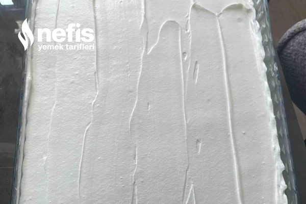 16. İyice soğuduğuna emşn olduktan sonra sırasıyla krem şantisini sürüyoruz.
