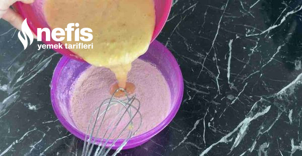 - Daha sonra kuru gereçlerin içerisine ıslak materyalleri ek ederek tekrar tel çırpıcı yardımıyla homojen bir kıvam alana kadar karıştırın.