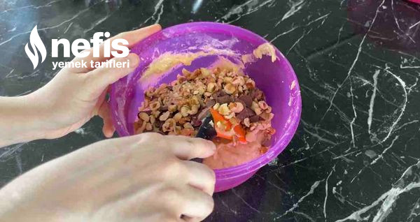 - İçerisine ceviz ve çikolata kesimlerini ek ederek tekrar karıştırın.