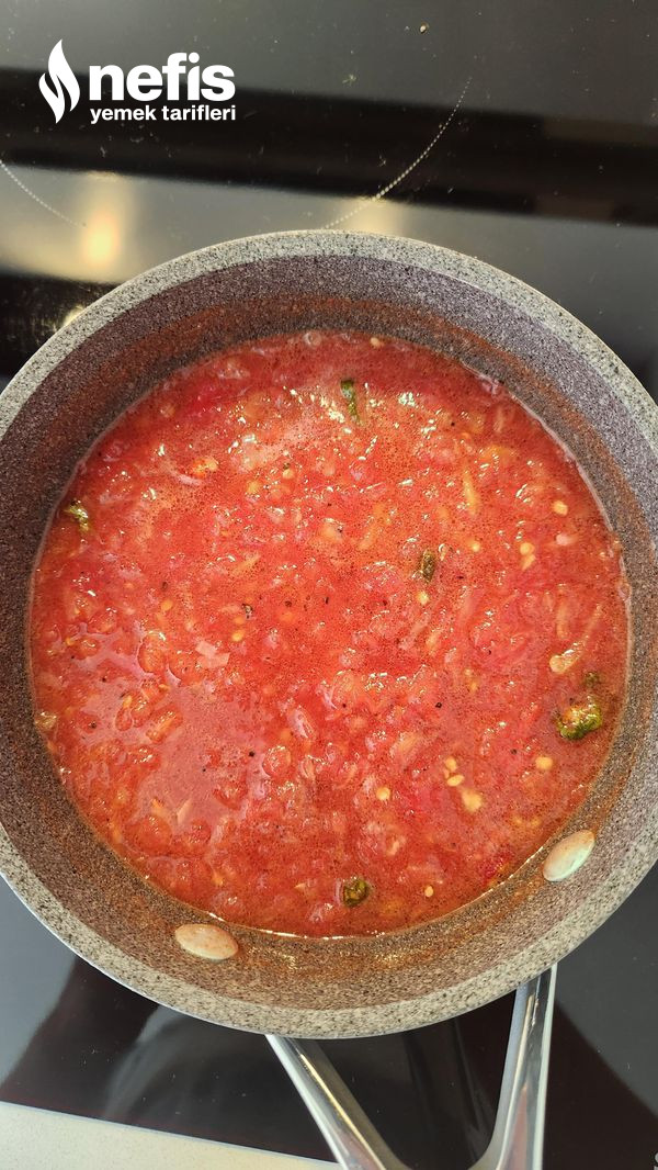 3. Sebzeleri sırayla fritözde kızartın. Rendelenmiş domatese 2 diş sarımsak, tuz, pul biber, fesleğen ve karabiber ekleyip bir tavada sıvı yağ ile pişmeye bırakın.