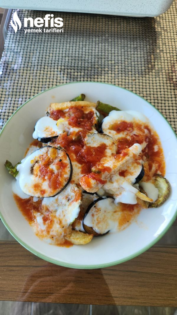 4. Kızaran zerzevatları tabağa alın, üzerine sarımsaklı yoğurt ve domates sosu ekleyip servis edin. Afiyet olsun.