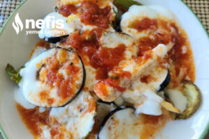4. Kızaran zerzevatları tabağa alın, üzerine sarımsaklı yoğurt ve domates sosu ekleyip servis edin. Afiyet olsun.