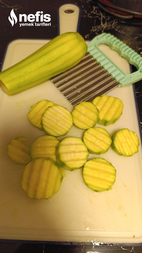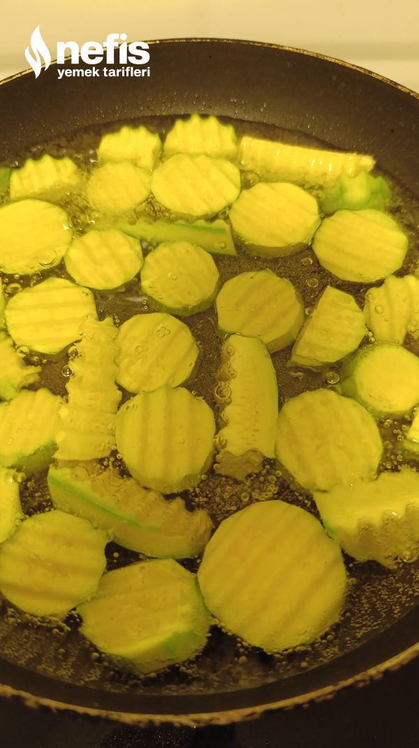- Kabakların kabuklarını soyup yuvarlak dilimler elde edip tuzlayıp kızartıyoruz.