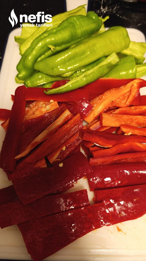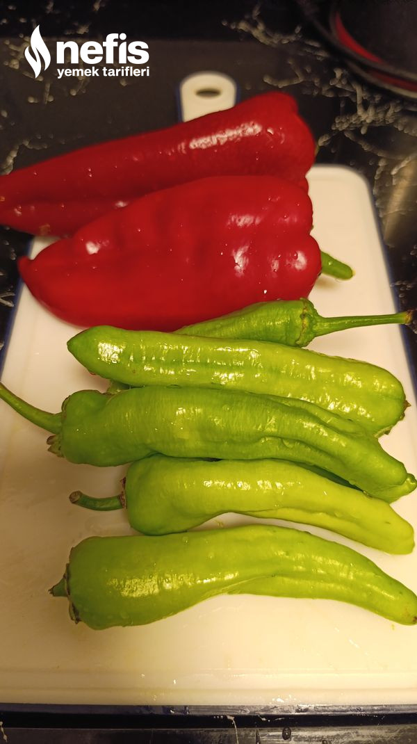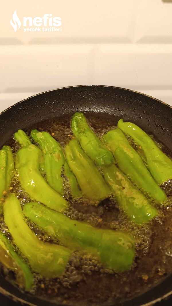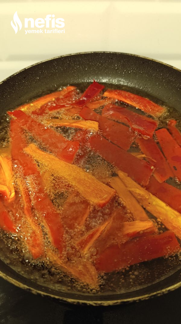 - Biberleri tohumlarından ayırıp uzun dilimlere ayırıp tuzlayıp kızartıyoruz.