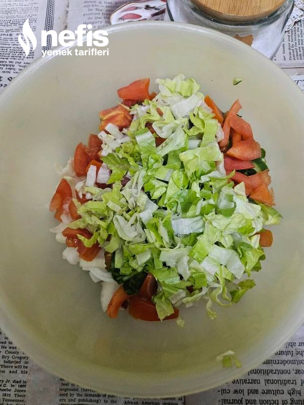 2. Uygun bir kaseye sos için olan materyaller konulur ve karıştırılır hazırlanan doğranmış sebzelerin üzerine gezdirilir.
