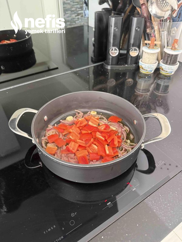 3. Ardından biberi ekleyip sotelemeye devam edin.