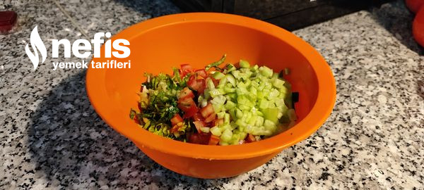 - Kıvırcık maydanoz salatalık ve domates doğranır hazırlanan karnabahar eklenir baharatlar tuz ve limon suyuda katılıp, karıştırılır tanımımız hazır. Deneyeceklere afiyet olsun.