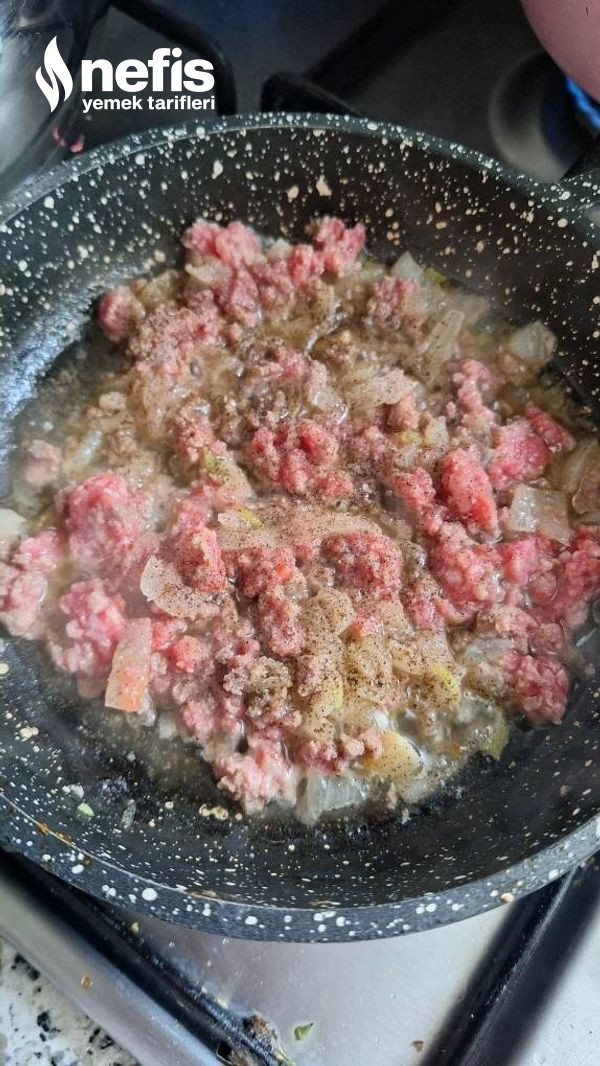 - Soğan ve kıyma uygunca kavrulur biraz tuz karabiber eklenir.