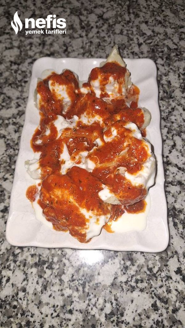 - Sırası ile karnabahar yoğurt salça ve kıyma eklenerek servis edilir.