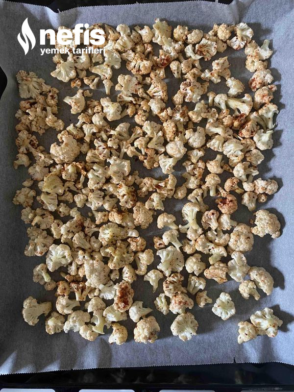 1. İlk olarak karnabaharları küçük küçük doğrayıp 2 yemek kaşığı zeytinyağı ve baharatları koyup karıştırıp fırınlıyoruz. (200 derecede 20-25 dk fırındaladım).
