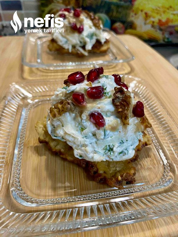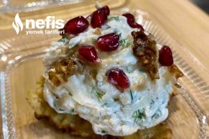 6. Servis tabağına alıp üzerine tahin ,zeytinyağ, ceviz ve nar ekliyoruz .