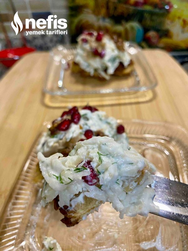 5. Rendelenmiş kerevize koyu yoğurt ,dereotu ve sarımsak tozu ,tuz ekleyip karıştırıyoruz .