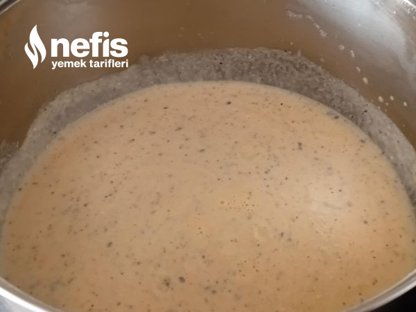 - Karnabaharı derin bir kaba ek edelim sütü, makarna suyunu baharatları, sarımsağı ek edelim ve el blenderden geçirelim.