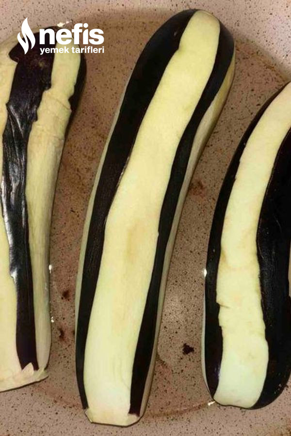 1. Öncelikle patlıcanlarımızı çizgili formda soyup tuzlu suda bekletelim. ( yağ çekmemesi ve acılığı varsa çıkması için ).