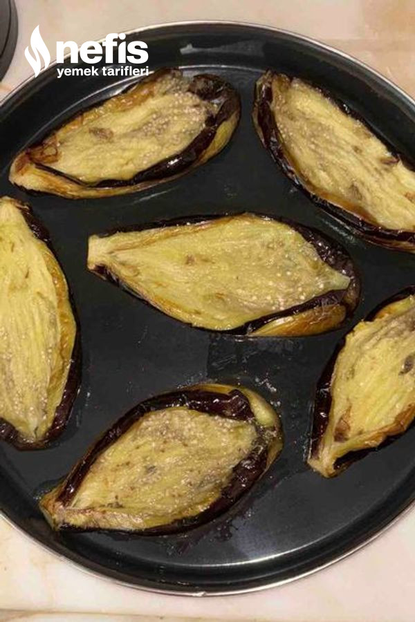 8. Kızarmış patlıcanlarımızı uygun bir fırın tepsısıne alalım.