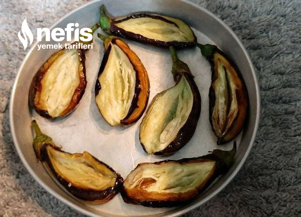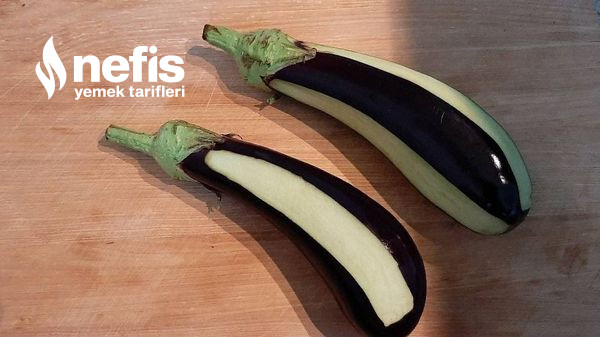 1. Patlıcanların kabuğunu şerit halinde soyuyoruz.