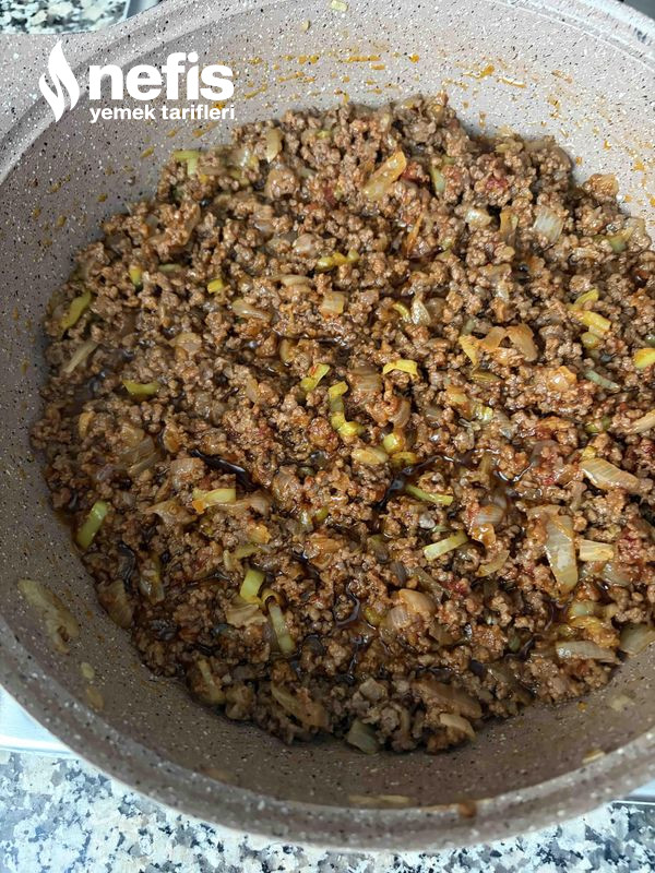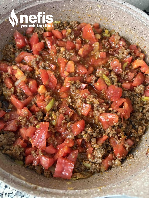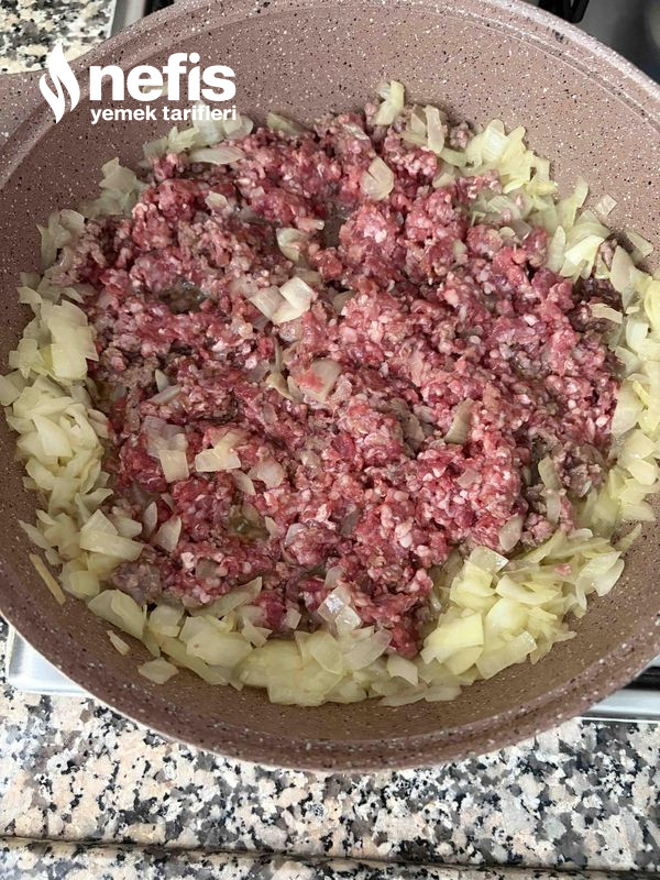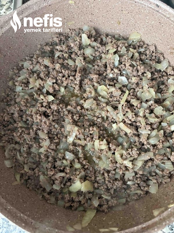 7. Daha sonra kıymayı koyup kavuruyoruz.