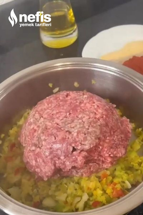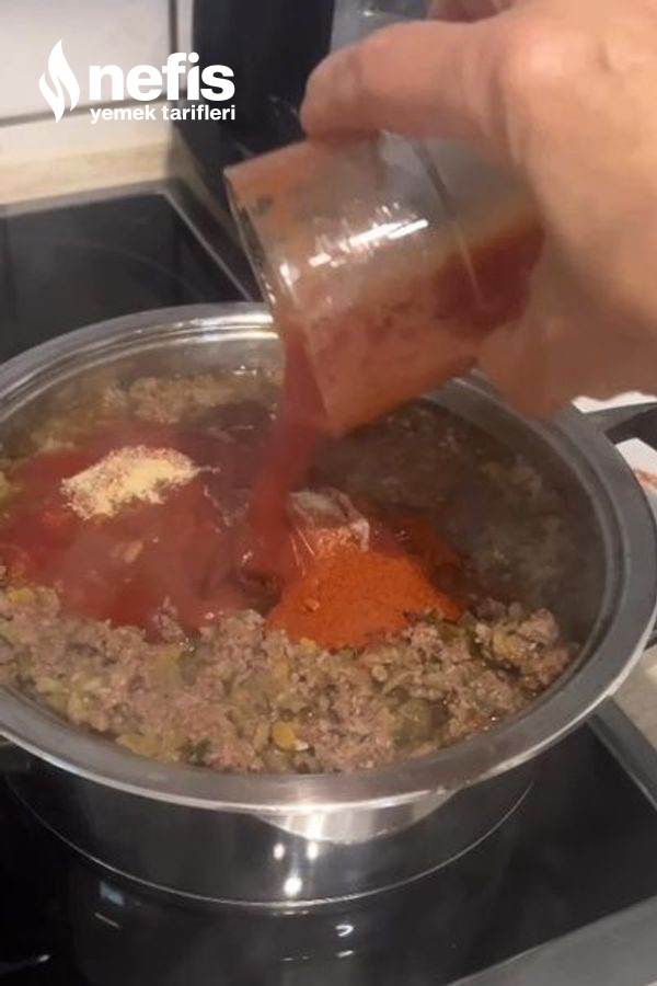 - Ardından kıymayı ekleyin ve kavurmaya devam edin.