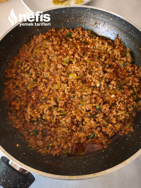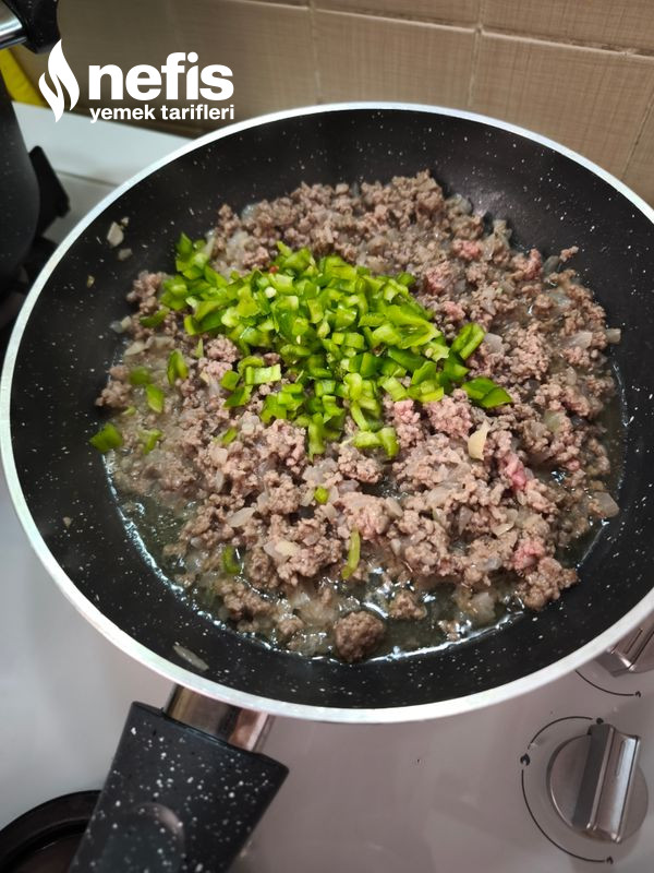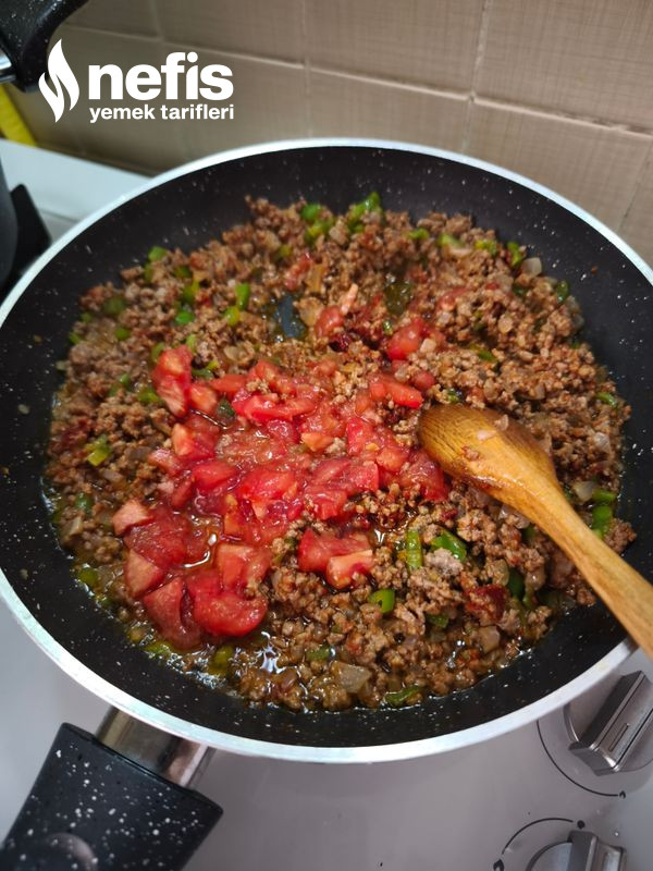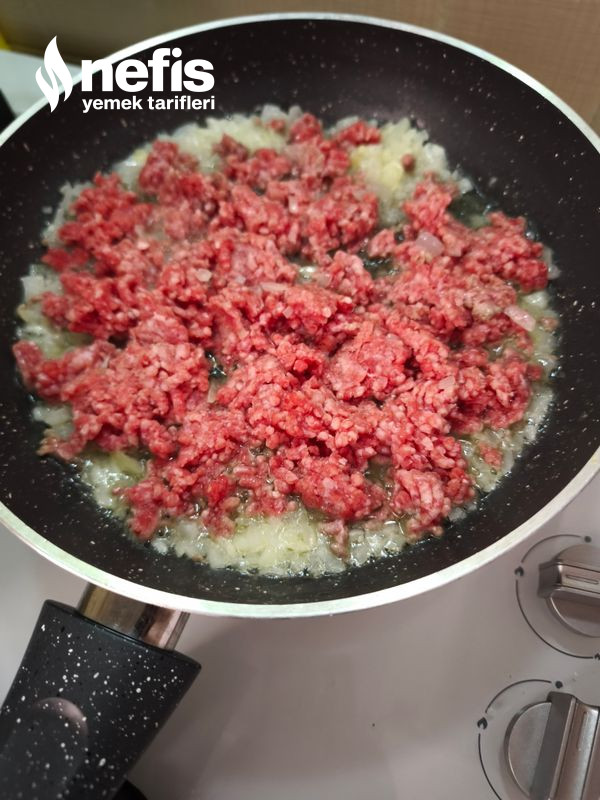 8. Daha sonra pişirdiğimiz kıymayı koyalım.