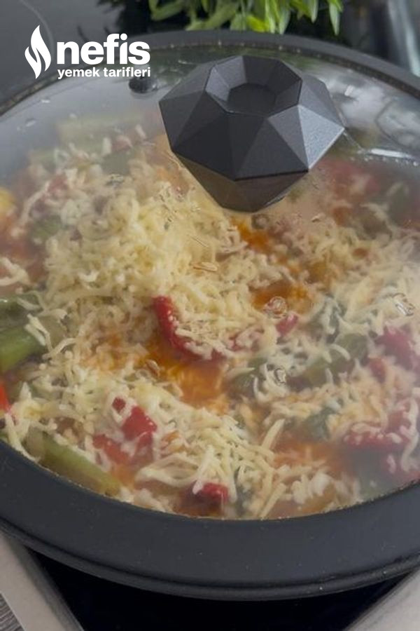 - Son olarak üzerine rendelenmiş kaşar peyniri serpip, tekrar kapağını kapatarak peynir eriyene kadar pişirelim. Deneyeceklere şimdiden afiyet olsun.