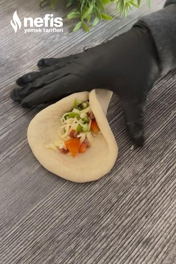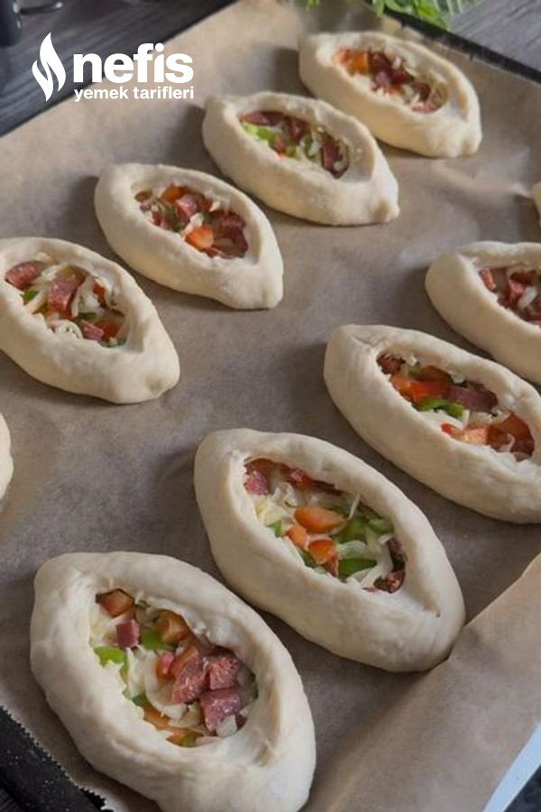 - Bezeleri elimizle genişletip iç harcından koyarak kapatalım. Kapattığımız yer alta gelecek şekilde yağlı kağıt serili fırın tepsisine dizelim. Üzerini bir bez ile örtüp 20 dakika tepsi mayası verelim.
