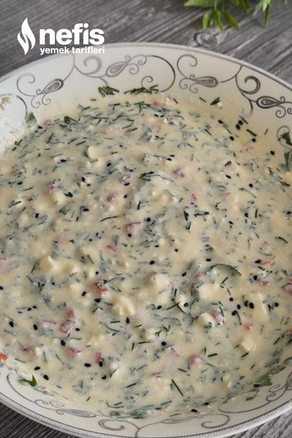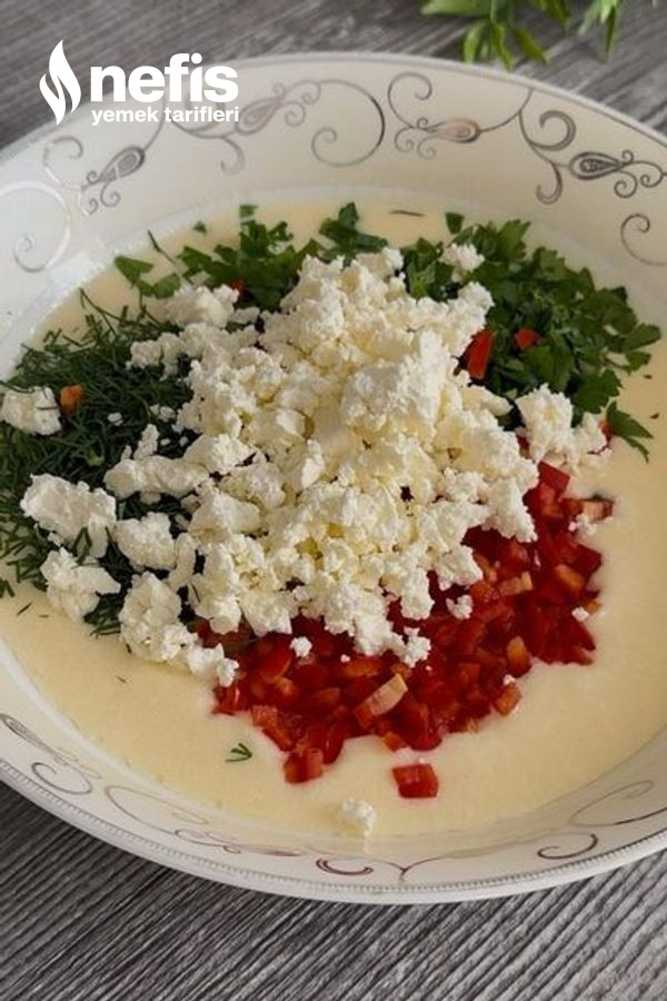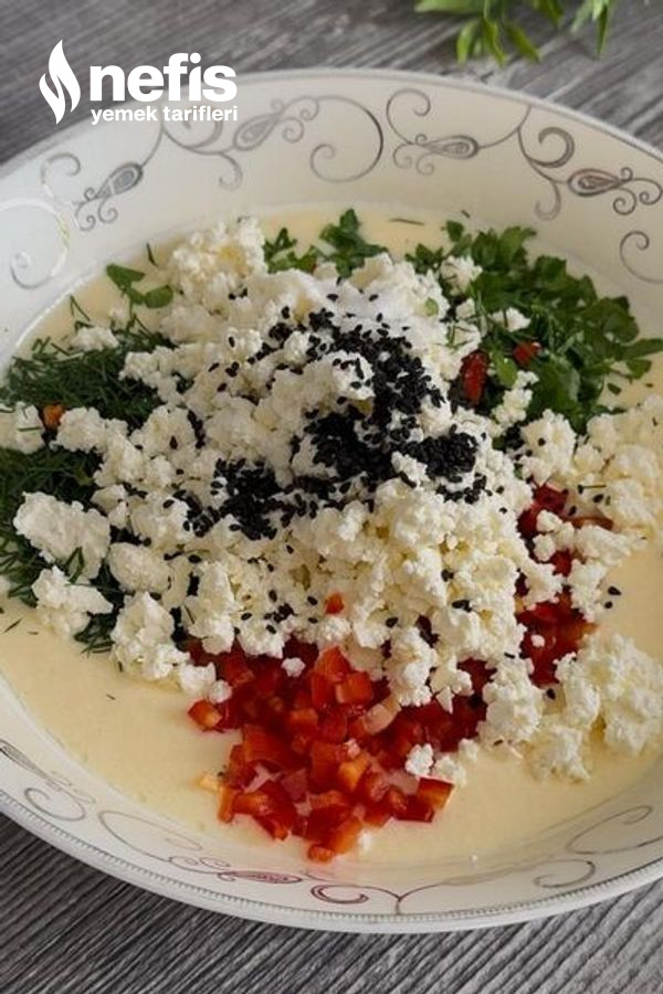 2. Maydanoz, dereotu, kapya biber, beyaz peynir, çörek otu ve tuzu ekleyip güzelce karıştıralım.