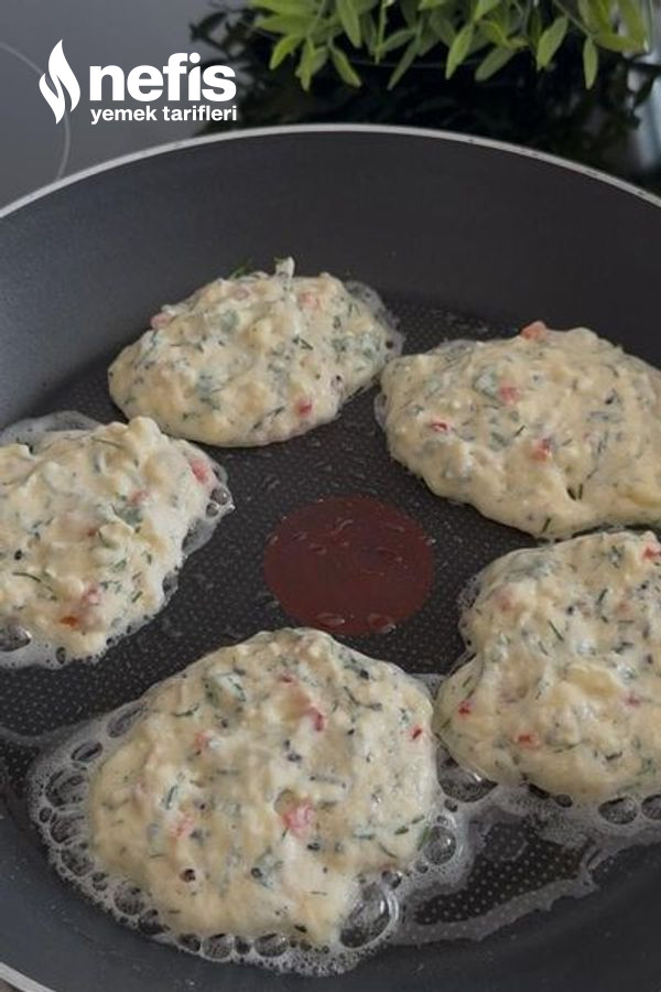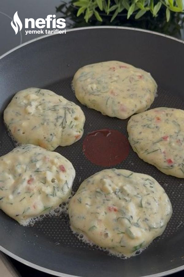 5. 1 er yemek kaşığı hamurdan alalım ve tavaya yayalım.