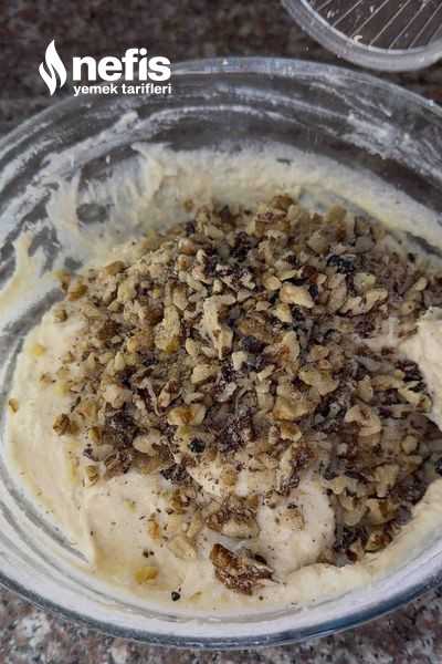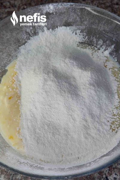 2. Diğer taraftan yumurta süt yoğurt ve tüm materyalleri karıştırıp, kek hamurundan daha ağır bir hamur yapın.