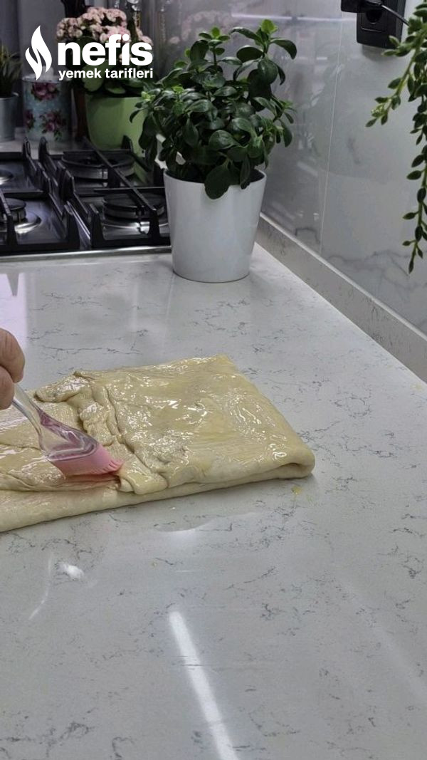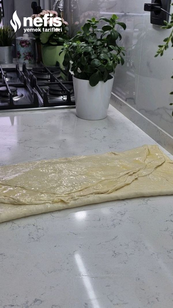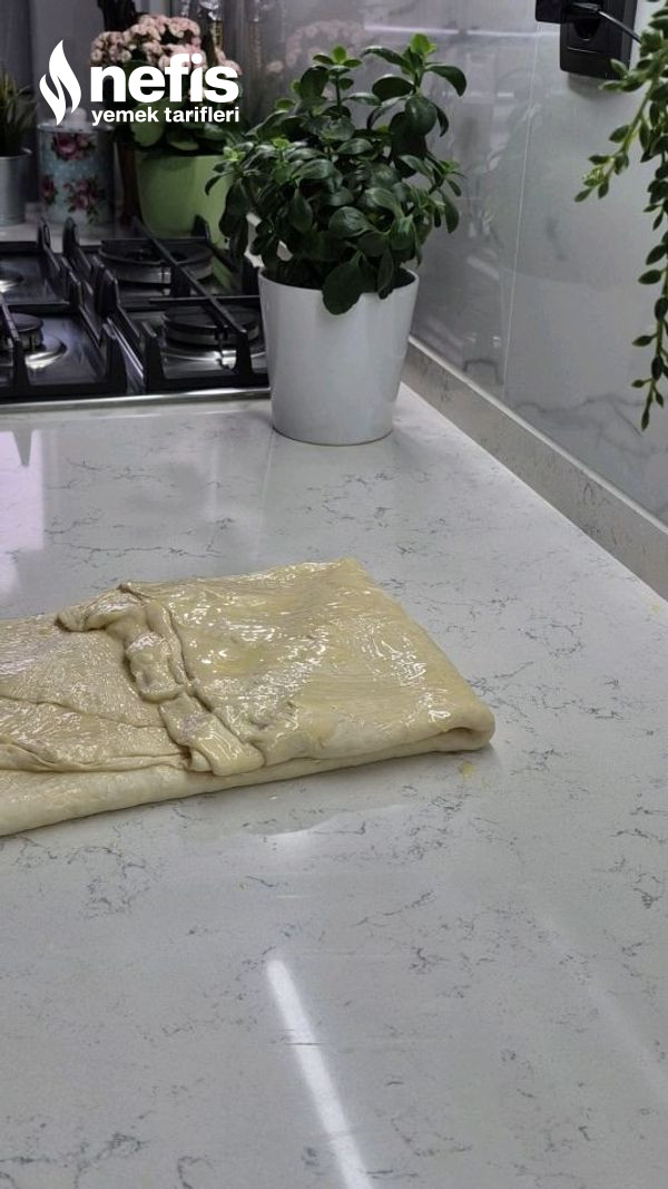 - Üst kenarda katlayın bu sefer yağlamayın 15- 20 dakika buzlukta dinlendirin.