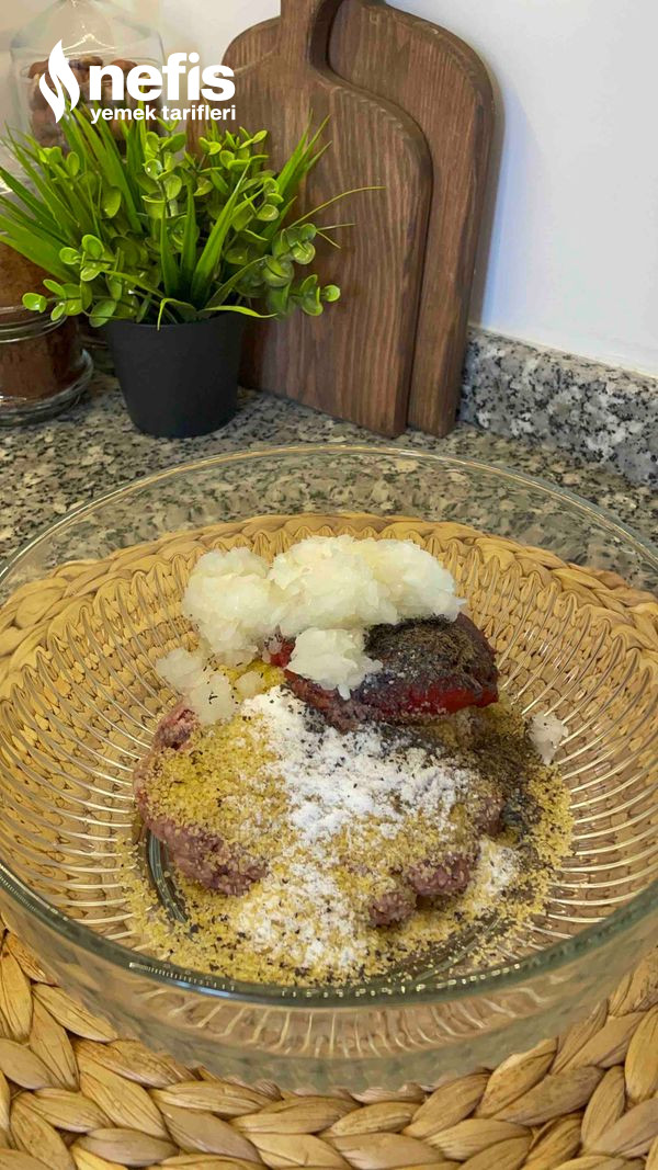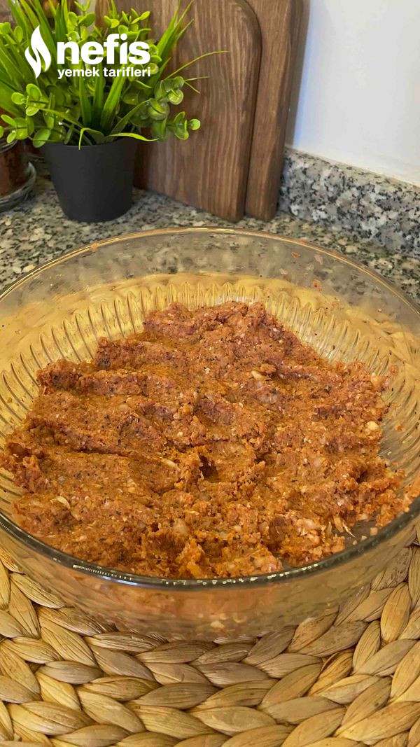 2. Harcımız için; kıyma, soğan, bulgur, salça ve baharatları ekleyip yoğuralım.