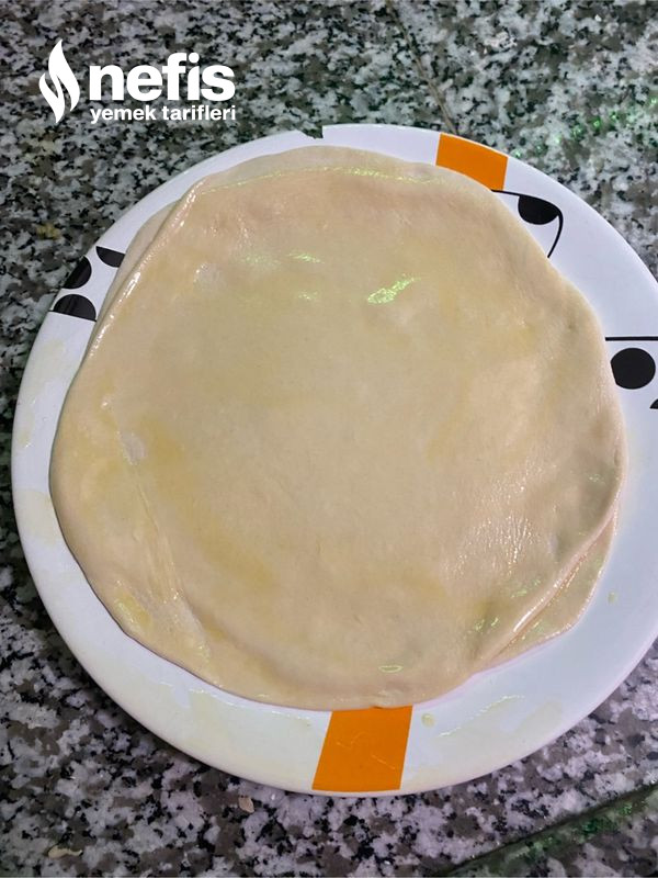 7. 2 şer tane olacak formda başka farklı hamurların ortalarını ve üstlerini yağlayıp bekletelim. 5 tane katmer olacak.