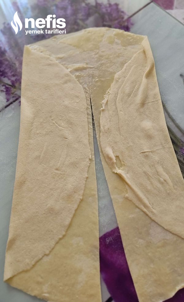 - Dinlenen bezeleri açabildiğiniz kadar açın içine eritilmiş tereyağı sürüp iki tarafını katlayıp tam ortasından kesin katlayın başka bezeleride tıpkı formda yağlayıp katlayın.