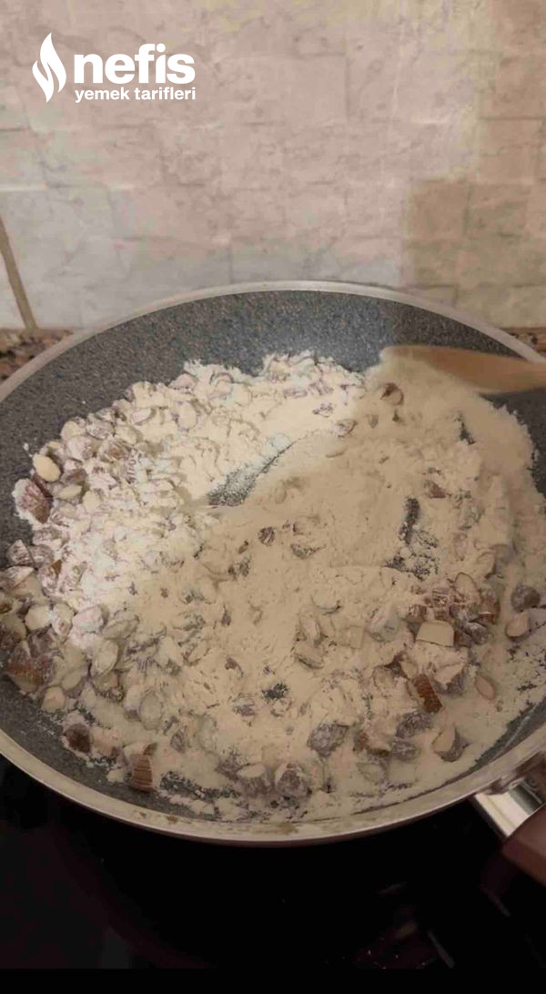 - 1 su bardağı unu ve bademi pembeleşinceye kadar kavurun.