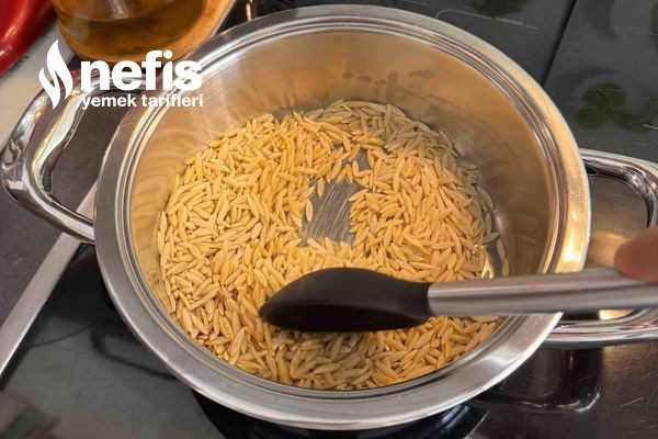 - Sıvıyağında arpa şehriyeyi daima karıştırarak orta ateşte yakmadan rengi dönene kadar kavurun.