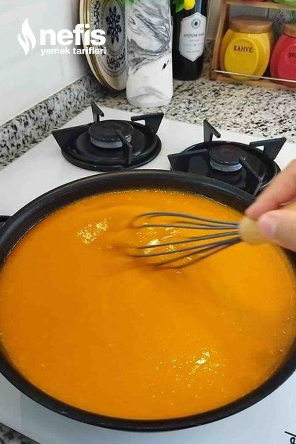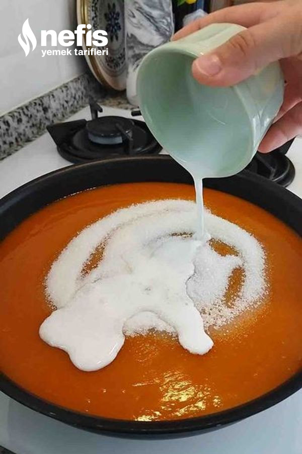 - Sonra tekrar tavaya alıp üzerine şeker ve az suyla açtığınız nişastayı ekleyin.