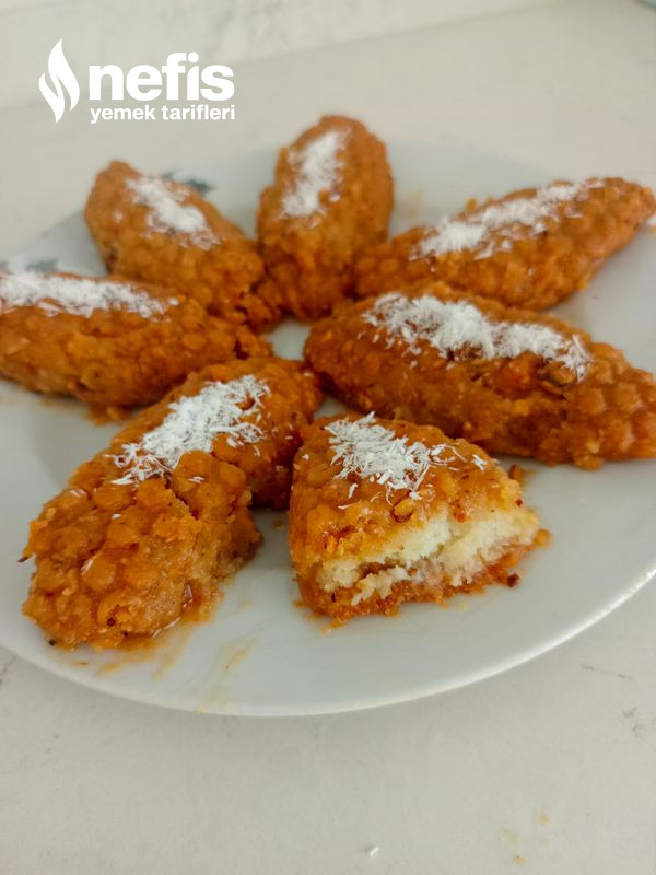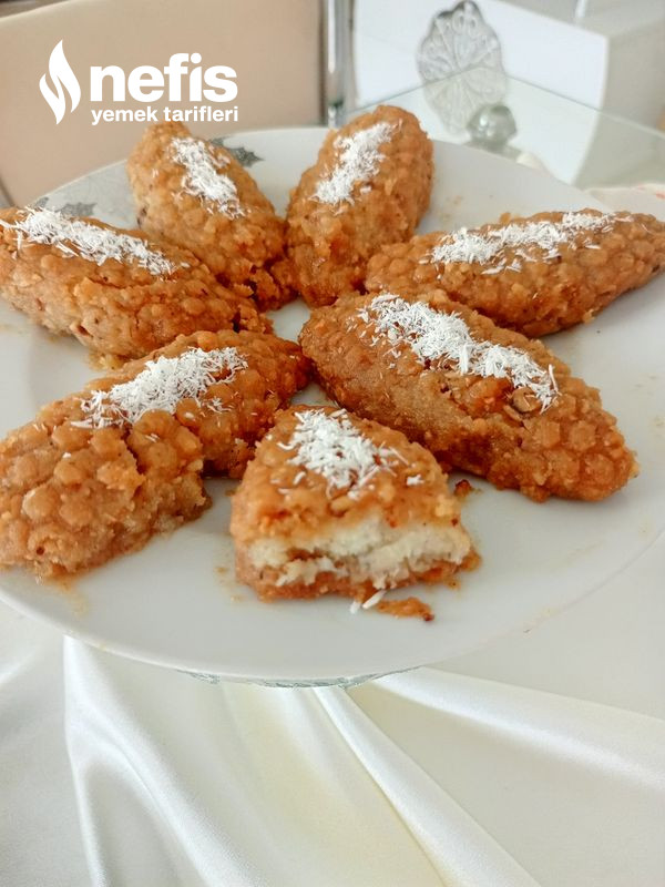 - İç harcı için süt ve irmiği tavayı alıp, yoğunlaşana kadar pişirelim. Fokurdamaya başlayınca ocaktan alıp, soğumaya bırakalım. Soğuduktan sonra içine hindistan cevizlerini ve pudra şekerini ekleyelim.