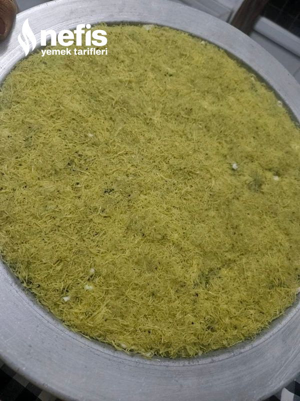 - Oda sıcaklığında sade yağ kadayıf harmanlanır.