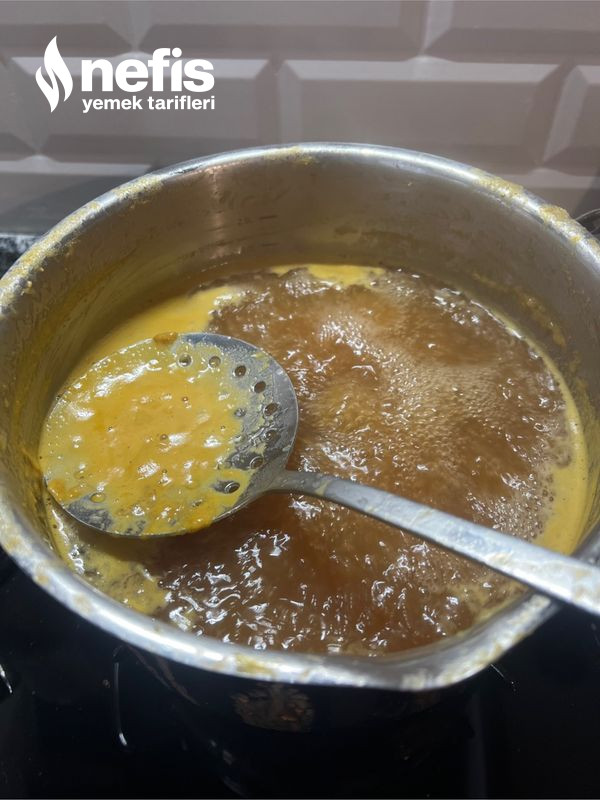 3. Kaynamaya başladıktan sonra küçük ocakta kaşık ateşte yoğunlaşana kadar yaklaşık 45 dakika kaynatmaya devam ediyoruz bu sırada çıkan köpükleri üzerinden alıyoruz tenceremizi soğumaya bırakıyoruz.
