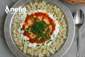 - Diğer servis tabağına ayırdığımız (susuz) mantının üzerine yoğurt dökelim sosunuda gezdirerek servis edelim.