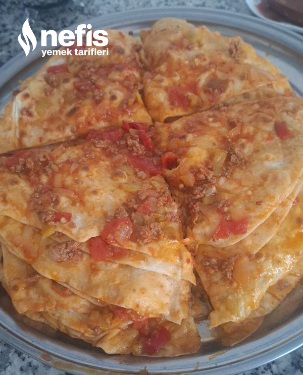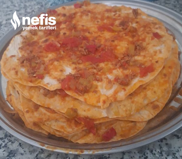 8. Üzerine kıymayı eşit halde her yerine gelecek formda yayarız. 15 yufka yaptım üst üste. Kalan 5 yufkasını sonraki gün yaptım çocuklarıma. Çok severek yediler.