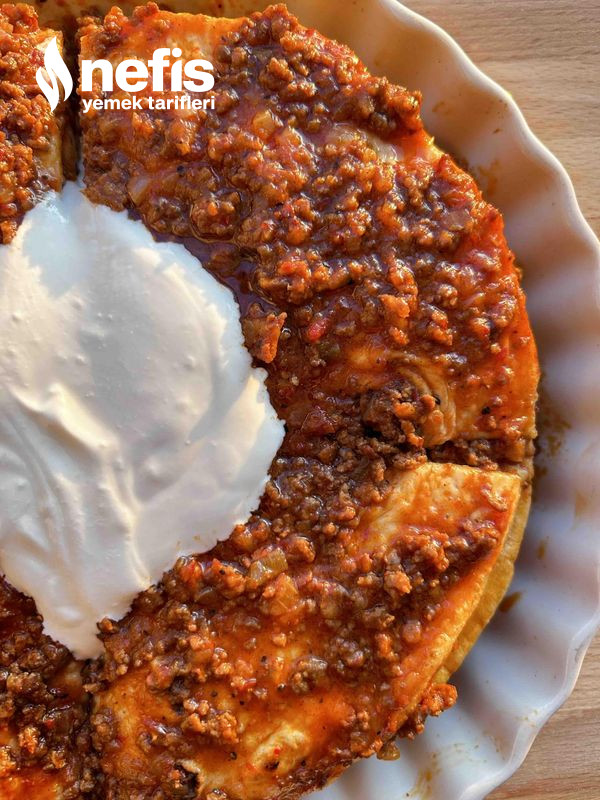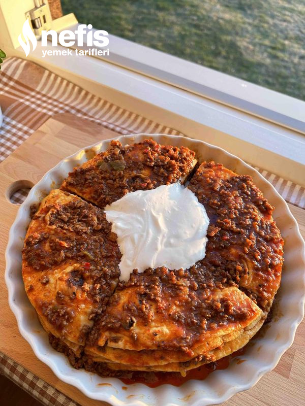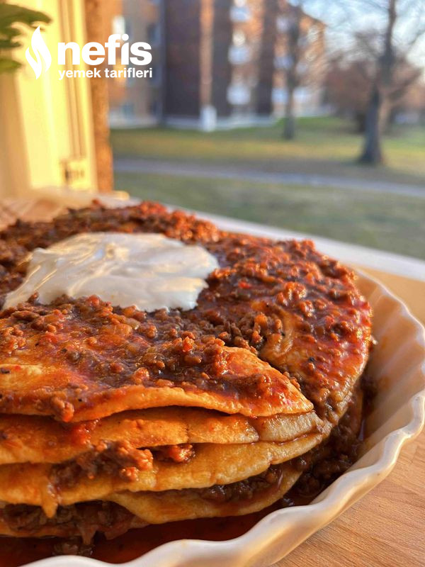 - Her lavaşın üzerine kıymalı harçtan sürerek üst üste dizin.