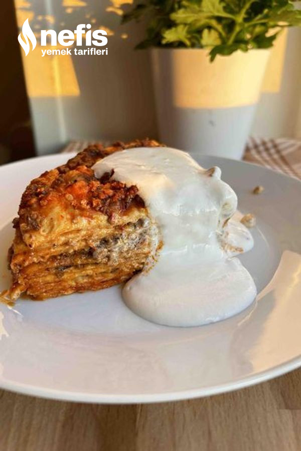 - Pasta üzere dilimleyin, üzerine sarımsaklı yoğurt gezdirin.