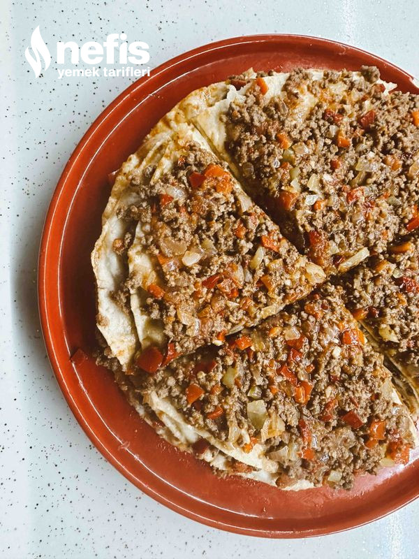 - Hazırladığımız lavaşı geniş bir tabağa alalım üzerine iç harcımızdan bir kaşık yardımıyla yerleştirerek her yerine gelecek formda yayalım.